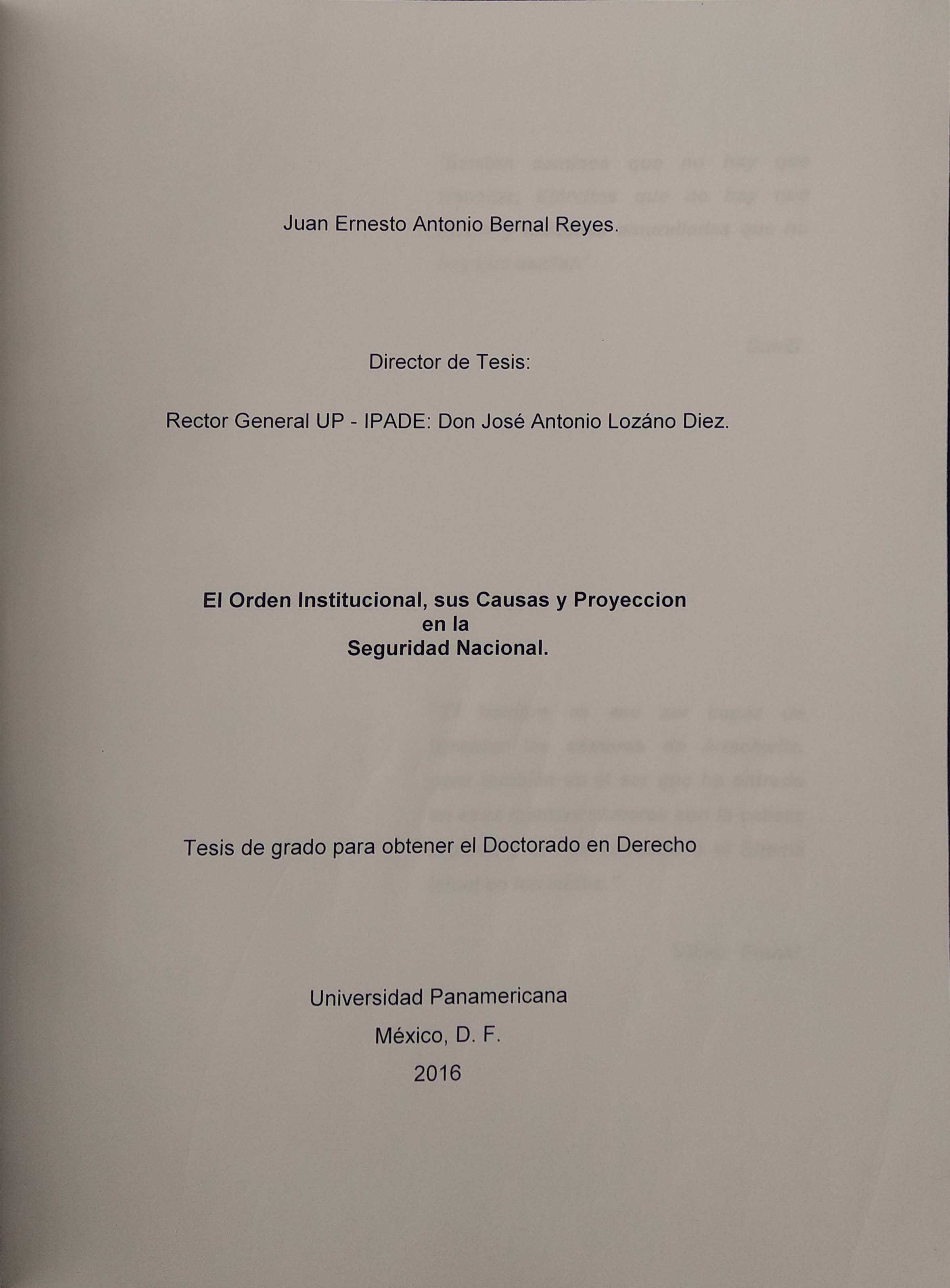TESIS DE GRADO PARA OBTENER EL DOCTORADO EN DERECHO. EL ORDEN INSTITUCIONAL, SUS CAUSAS Y PROYECCION EN LA SEGURIDAD NACIONAL