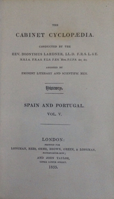 THE CABINET CYCLOPAEDIA. CONDUCTED BY THE REV. DIONYSIUS LARDNER, LL.D. F.R.S. P. & E.M.R.I.A. F.R.A.S. F.L.S. HON.F.C.P.S. &C. &C. ASSISTED BY EMINENT LITERARY AND SCIENTIFIC MEN. HISTORN. SPAIN AND PORTUGAL. VOL. V