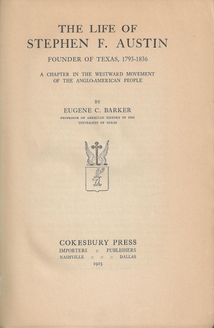 THE LIFE OF STEPHEN F. AUSTIN FOUNDER OF TEXAS, 1793 – 1836. A CHAPTER IN THE WESTWARD MOVEMENT OF THE ANGLO-AMERICAN PEOPLE