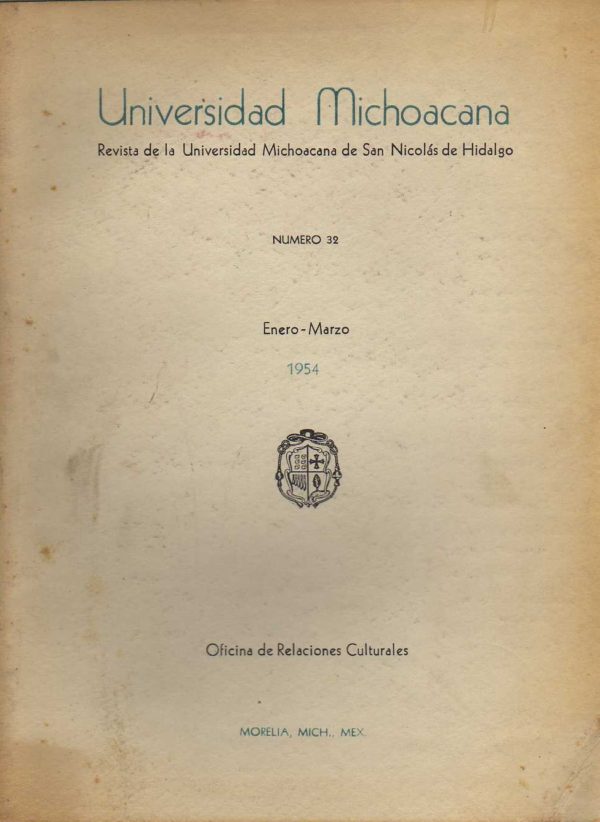 UNIVERSIDAD MICHOACANA. 33. REVISTA DE LA UNIVERSIDAD MICHOACANA DE SAN NICOLAS DE HIDALGO. NUMERO 32. AÑO DE 1954. ENERO-MARZO