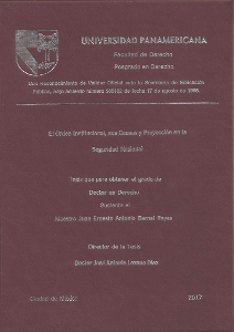UNIVERSIDAD PANAMERICANA. FACULTAD DE DERECHO. POSGRADO EN DERECHO. EL ORDEN INSTITUCIONAL, SUS CAUSAS Y PROYECCION EN LA SEGURIDAD NACIONAL. TESIS QUE PARA OBTENER EL GRADO DE DOCTOR EN DERECHO. SUSTENTA EL MAESTRO JUAN ERNESTO ANTONIO BERNAL REYES. DIRECTOR DE LA TESIS DOCTOR JOSE ANTONIO LOZANO DIEZ
