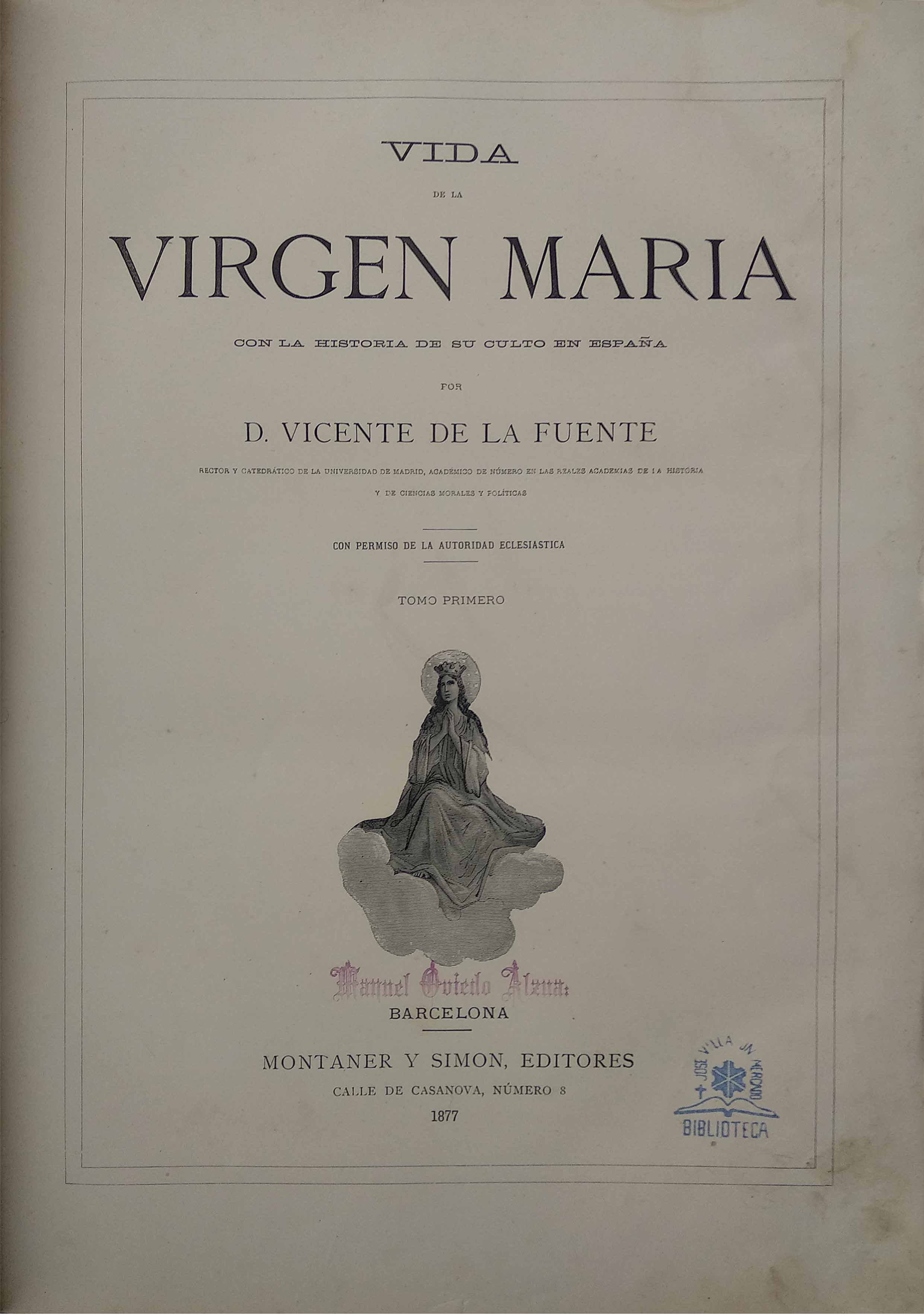 VIDA DE LA VIRGEN MARIA CON LA HISTORIA DE SU CULTO EN ESPAÑA. TOMO I